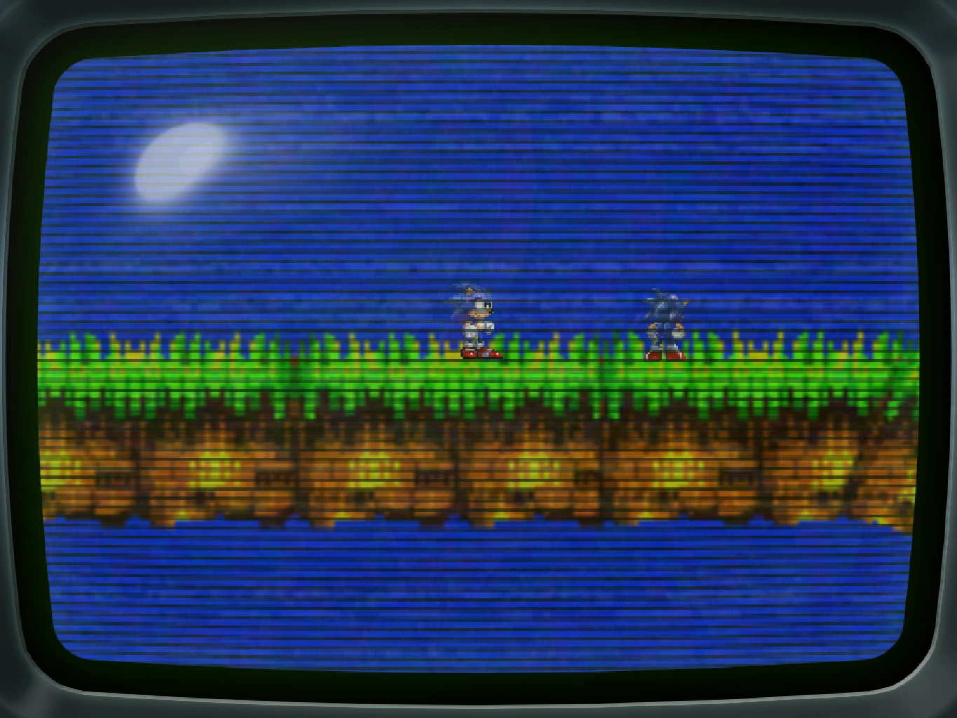 Another "Sonic" was idle, i initially thought the he was a part of the level itself, this sonic teleported on top of me and would drop down, killing "sonic" the game FORCED me to change my character to tails. The zone resembled flying battery, yet it had NO music whatsoever, i quit the game due to boredom and attempted to burn the disc (yet it didn't work).