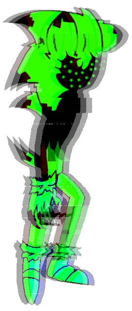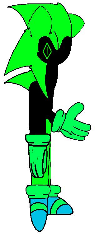 Crypto is a 22 year old green Hedgehog with black skin, black sclera, and normally one green Diamond shaped pupil in the eye. he wears lighter green gloves and blue shoes with Turquoise cuffs.