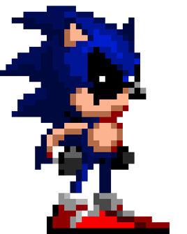 Its like Sonic 1 sprite, but the blue is more dark, black eyes, white pupils, "inky" blood.