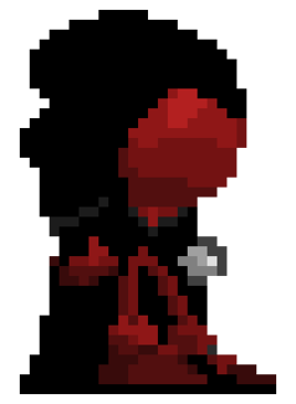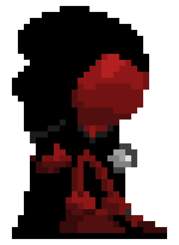 Grim resembles your typical reaper, a dark, tattered cloak hiding a visage draped in shadow, but rather than a skeleton, the body underneith is a featurless, skinless mobian, specifically hedgehog, corpse. All that remains is the exposed, rotting flesh. It's right hand and lower arm lack flesh as well, so it both give the impression of a skeleton and access the magic inside it's bones.