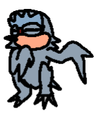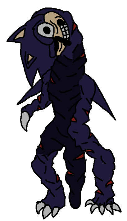 They have a appearance of a blue hedgehog that is mutated, a dark blue pattern is on their neck to their right leg to the tail. One of its arms has a claw, which is usually its attacking arm as its other arm is used for support of the legs. Their face is disfigured, which they have a missing arm and is grinning wide.