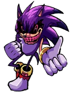 Executor X is an interesting take on 2011X where he doesn't have a voice and can only speak through pop-up messages, and the game plays out differently than SONIC 2011 does. Alan dies by drowning, Dave gets burned alive, and Paul gets his head smashed in, all because Executor likes to have variations on how the eternally tormented souls die. He has no real lore at the moment besides some game concept sprites, but even that is very limited at this current stage.
