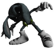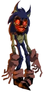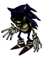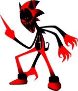 OSF X is born from a specific species of shape-shifting demons that can transform into popular figures, and in this case, X chose Sonic as the main conduit for his disguise. He also can shape into Amy and Postman Pat (who is unrelated to Sonic games), to add. In the game he controls, the player...well, plays as Sonic and has to escape X through various levels, basically a constant chase. Or, at least, it would be, if there wasn't a gimmick to switch from normal to X's chase sequence and back to normal repeatedly. X's world is a direct copy of Sonic's powered entirely by human souls, even when it appears normal, and he can appear in any of his three main forms when the chase sequence is happening. One interesting fact about X's true form is that he had to heavily mutilate himself to match Sonic's proportions, leading to his skin turning grey from blood loss.