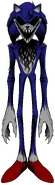 Xenolith originates from a fragment of stones which themselves had unknown origins, gaining sentience. He became quickly obsessed with Sonic the Hedgehog, and took a Sonic 3 and Knuckles disc, turning the world into his own after possessing Sonic and using him as an eternal vessel. He has since deemed the one worthwhile goal he should have to be to kill players of his game and bring them into his world, so he can torment them for all eternity. Fun fact: while his Faker form is 3'3" like normal Sonic, his Main form (pictured) is 22'14" tall!