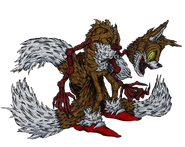 - Kakuhan/Guardian of Agitation - Kakuhan is X's equivalent to Gekido, being constantly angry at everything. He is so angry constantly that his face is permanently stuck in a look of pure rage, and his vessel's color has changed to red as a side effect of his constant, never-changing attitude towards anything and everything. His eyes bleed constantly, due to the pressure he puts on them by constantly being frowned and angry, resulting in the fake eyes completely dissolving and leaving his sockets empty. Due to his constant fit of rage, his original Sonic-like teeth have rotted to a decayed yellow, similar to X and Zanin. Kakuhan is the least-playful with victims, finding their existence pointless and wanting to get rid of them as quickly as possible since they annoy him. He is incapable of finding joy in anything whatsoever, however he does make an attempt when in the presence of his Lord. However, unlike Gekido, he is constantly angry and doesn't ever calm down unless very specific circumstances are met.