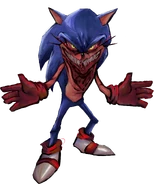 EXE only exists due to 2011X failing to create a vessel, making EXE by accident. This enraged 2011X, who banished him to his own reality instead of allowing him to stay within his. EXE now has a strict goal to take down 2011X, or Lord X by this stage, and prove that he is superior (in-canon, changed to have a strict relationship in ShinX's timeline to not cause problems during Member Discussions). His game is 3D, likely as a way to prove he's better than his father, and is set in what can be considered a version of the Modern Sonic world, with five main victims showcased in his upcoming game, "Sonic Prototype 2017".