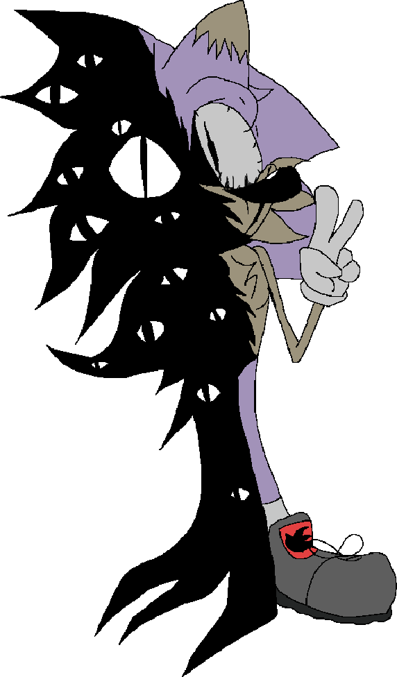 The Pretender, Michael or nicknamed Velocity Igelcotten (The Hedgehog in Swedish) by himself, is a malicious urban deity first drawn by Alcks on the 23rd of September, 2022 on a sheet of paper, first posted in a Discord DM. In his story, he is a Swedish urban legend known for mocking the appearance of Sonic, only being able to reveal his true form from one side, it resembling a black tentacled mess with glowing eyes all over.