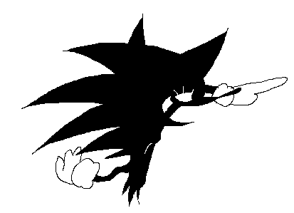 A black hedgehog that haves it arms very stretched, it always has that smilling, and it wears gloves.