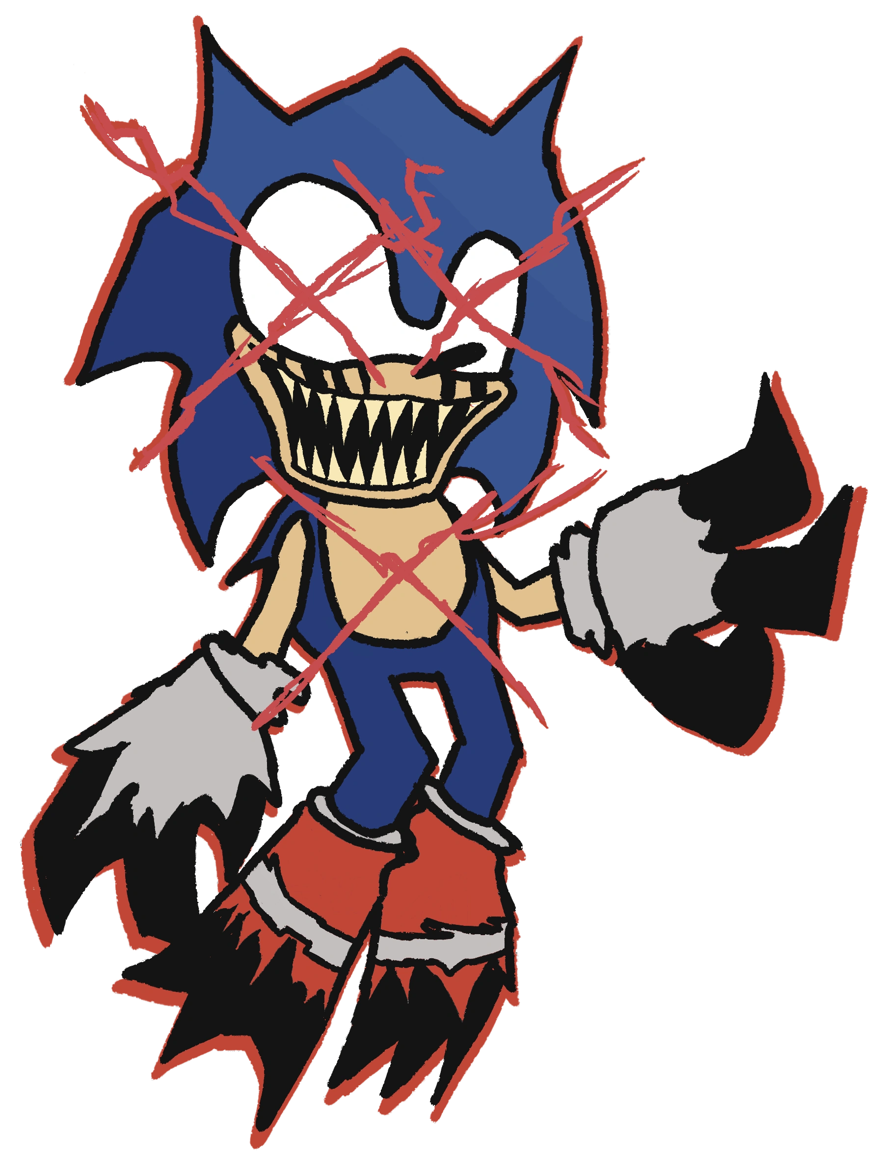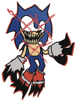 X appears as Sonic, albeit with his obvious abnormalities. His gloves and shoes are torn with his claws ripping through, his teeth are sharp and not very clean. He has 2 x's that act as eyes and a larger one across his chest, said x's behave similar to electricity.